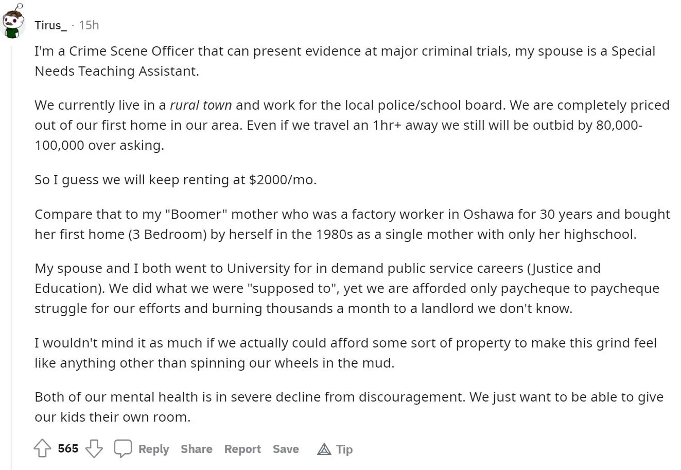 I have deliberately refrained from writing about the red-hot Canadian housing market thus far but feel like now is an appropriate time to offer my two cents, for whatever it’s worth. A good friend of mine passed along this Reddit post knowing it would be of great interest to me. Below is a screenshot edited to remove profanity.